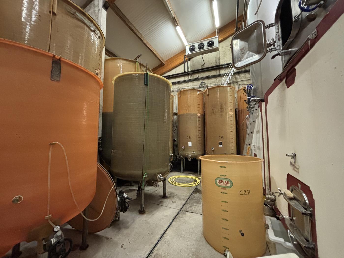 Les bâtiments sont semi-enterrés pouvant permettre une arrivée de la vendange par gravité.