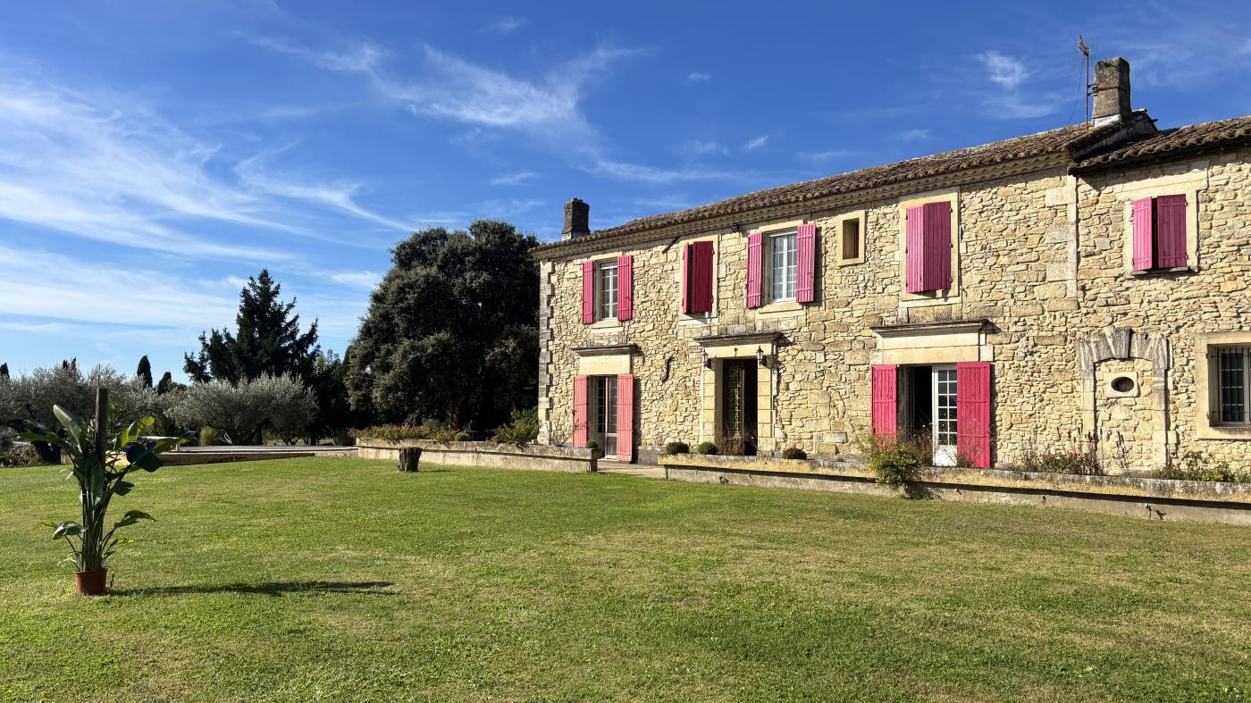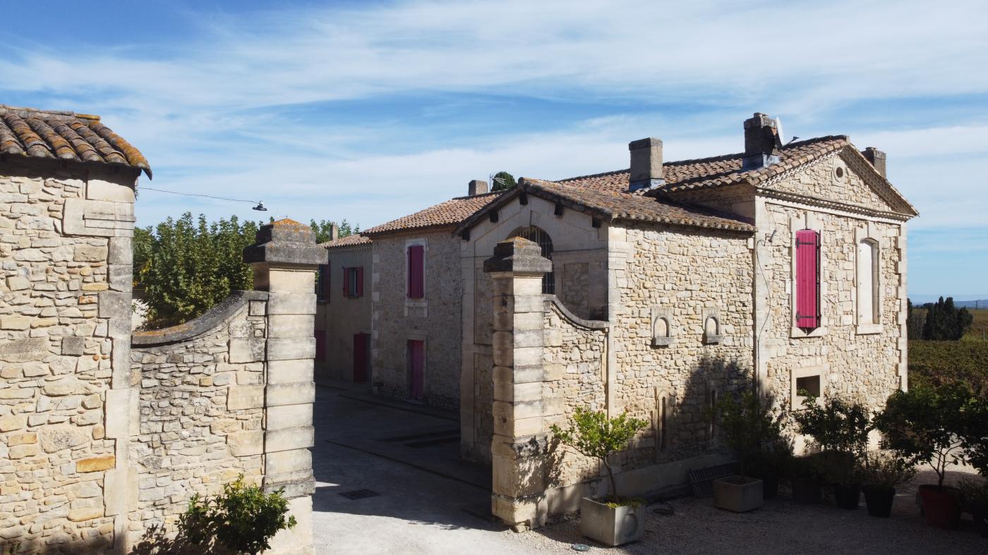 Beau domaine viticole, à vendre, situé dans l’appellation Costières de Nîmes, il s’étend sur plus de 90 ha.